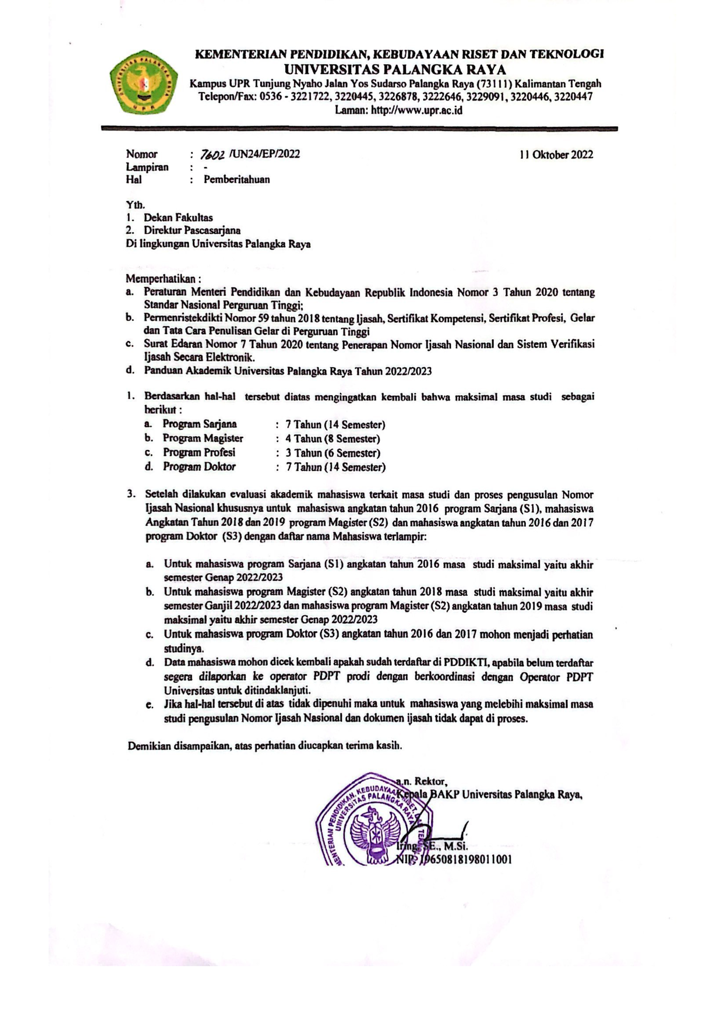 Pemberitahuan Maksimal Masa Studi Di Universitas Palangka Raya